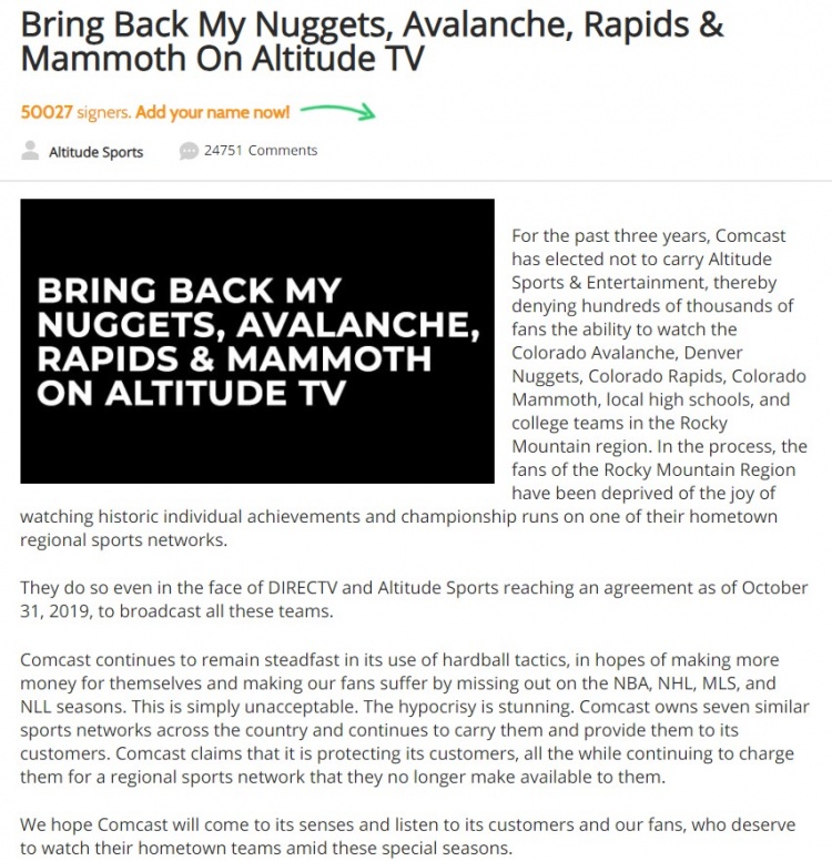 网上还有向康卡斯特施压的请愿